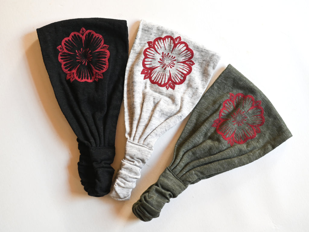 Keep your hair secured during face washing, mask treatments and more! Printed by hand with water based inks on American-made headbands.